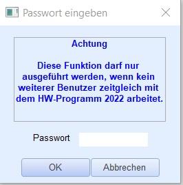 Zur Vorbereitung des Updates möchten wir darauf hinweisen, zu überprüfen ob die Datenbank hw_daten regelmäßig gesichert wird. Die Datenbank sollte in einem Sicherungskonzept regelmäßig gesichert werden.